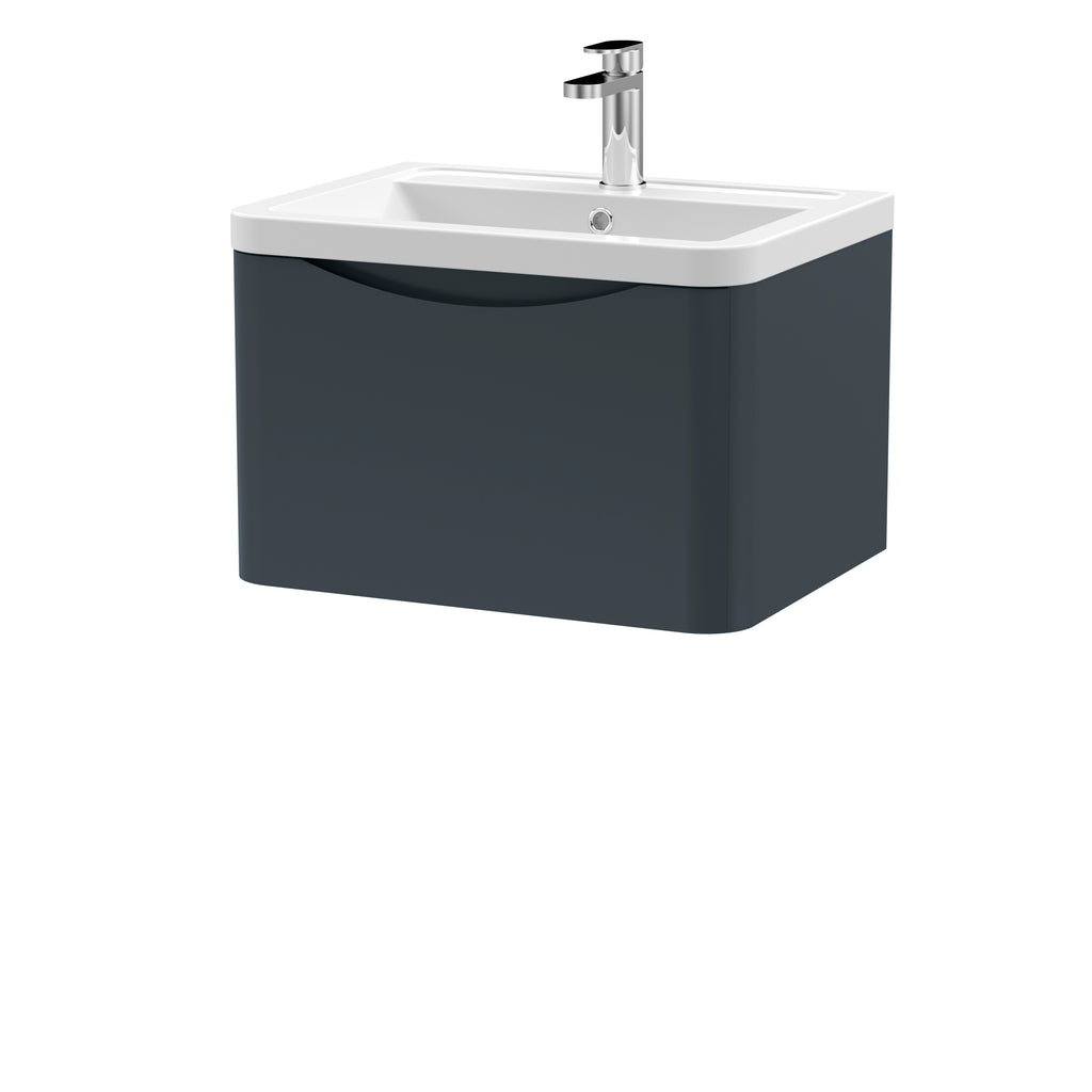 Anas Alphi Contemporary 600mm Wall Hung Vanity with Soft Black Finish and Ceramic Basin – 1 Drawer Design