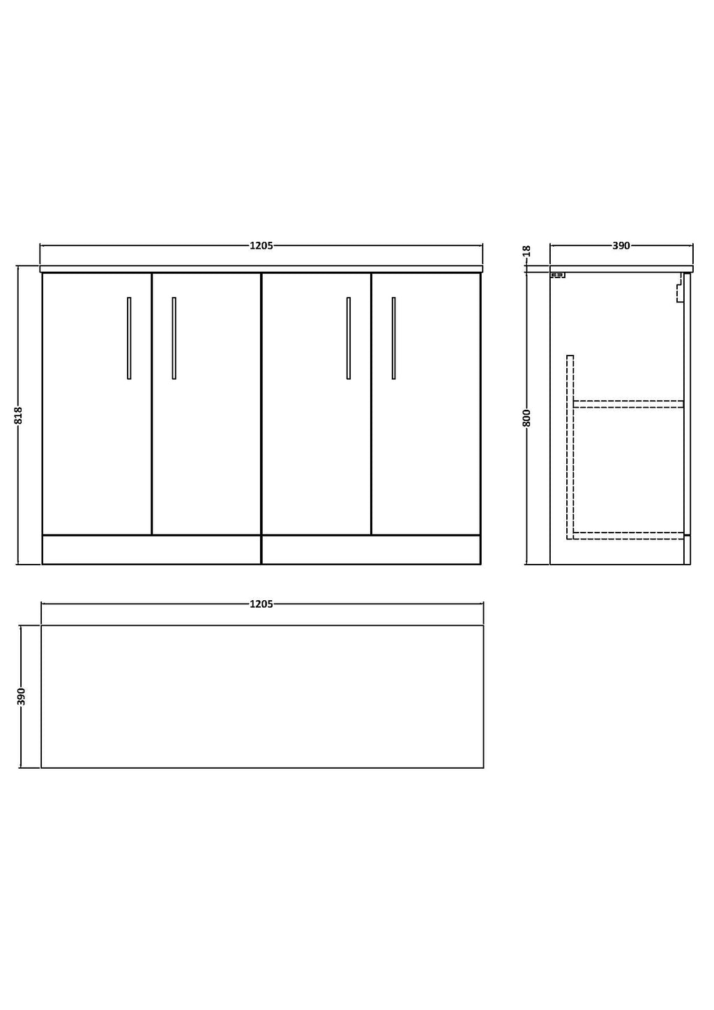 1200mm Floor Standing 4 Door Vanity & Worktop
