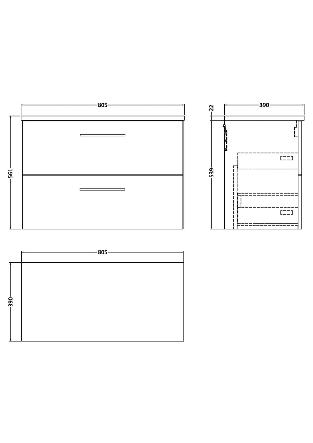 - Supplied with laminate worktop, for use with vessel basins (sold separately)