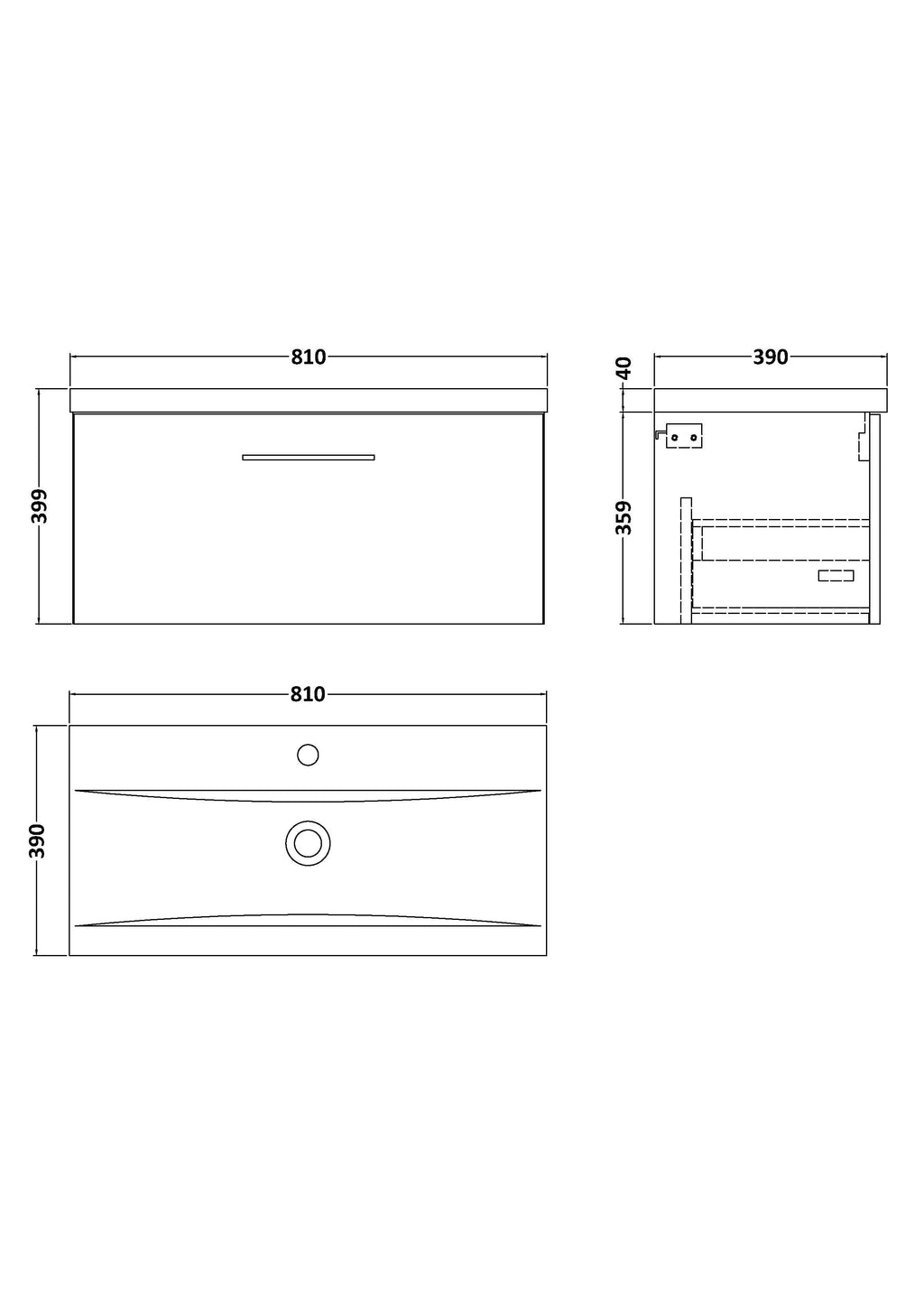 800mm Wall Hung 1 Drawer Vanity & Basin 1