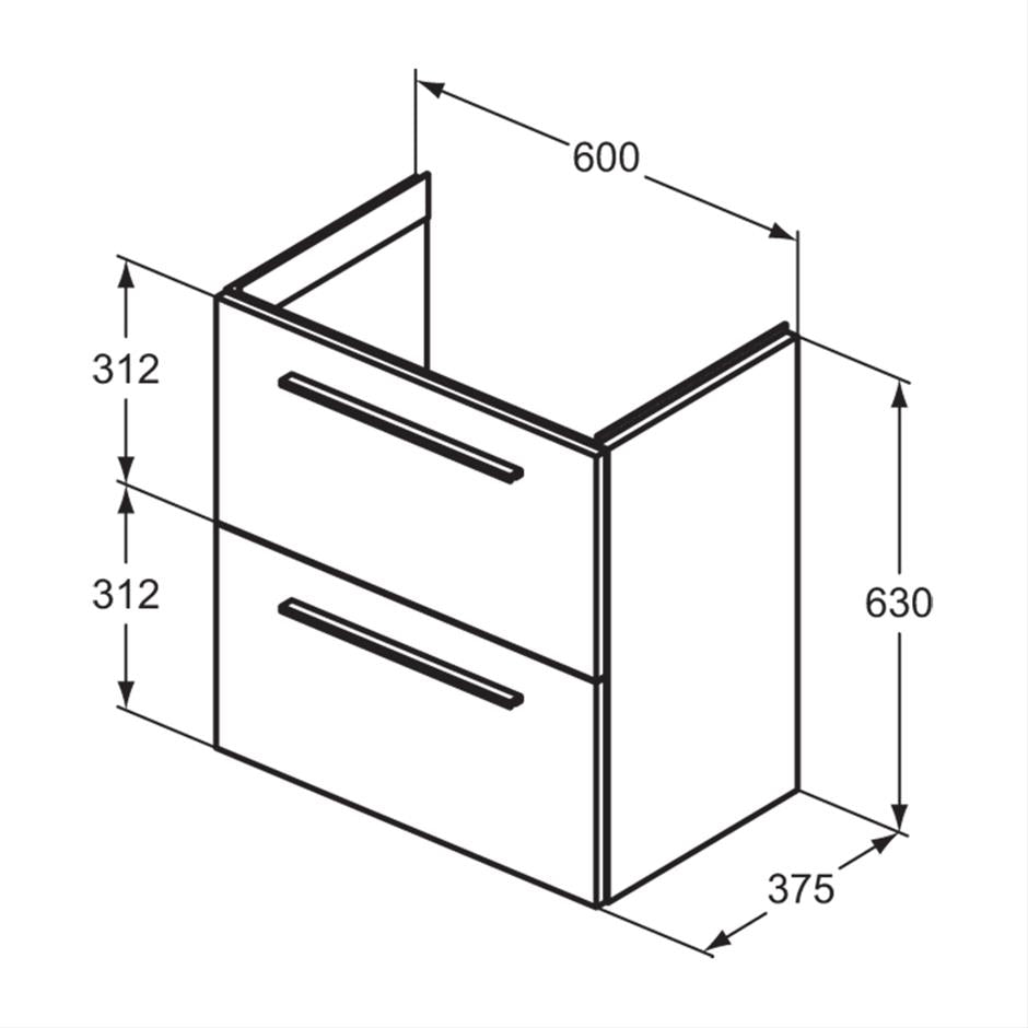 Ideal Standard i.life 600mm Compact Wall Hung Vanity Unit With Basin 2 Drawers Carbon Grey Matt T5293NV + T459001
