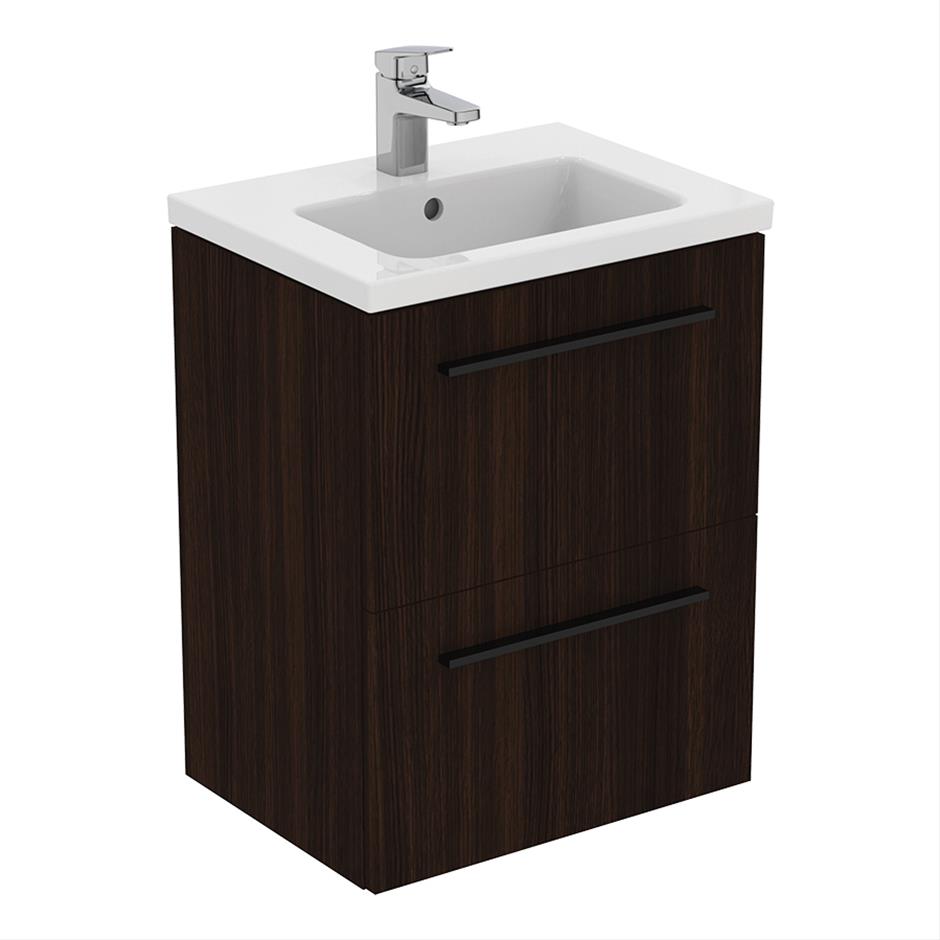 Ideal Standard i.Life S 500x630x375mm Compact Wall Hung Vanity Unit With Basin 2 Drawers Coffee Oak T5291NW + T459101