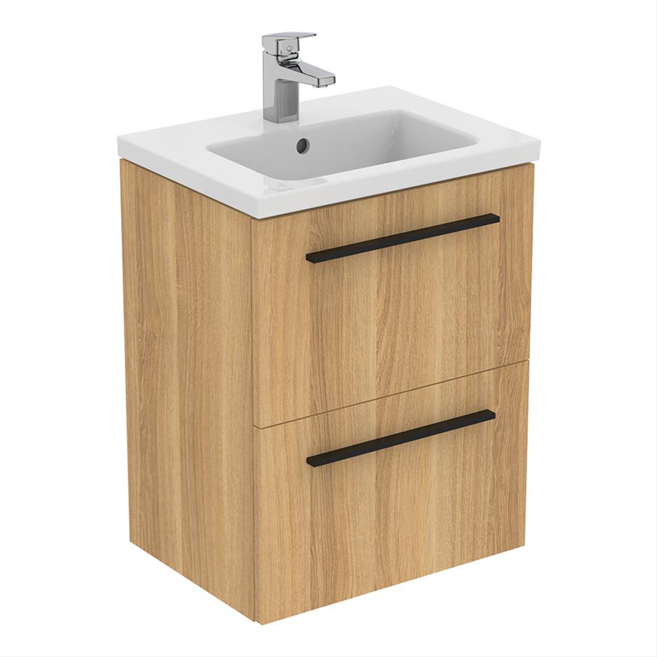 Ideal Standard i.Life S 500x630x375mm Compact Wall Hung Vanity Unit With Basin 2 Drawers Natural Oak T5291NX + T459101