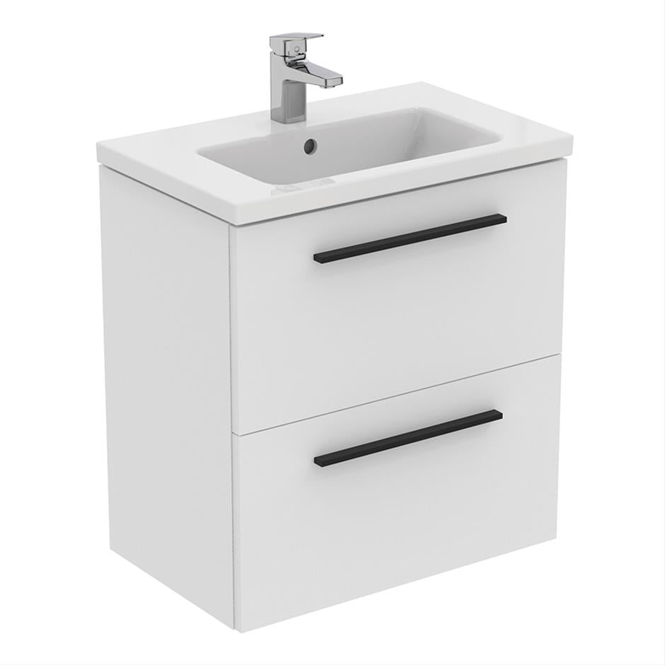 Ideal Standard i.life S 600mm 2 Drawer Compact Wall Hung Vanity Unit Matt White T5293DU + T459001