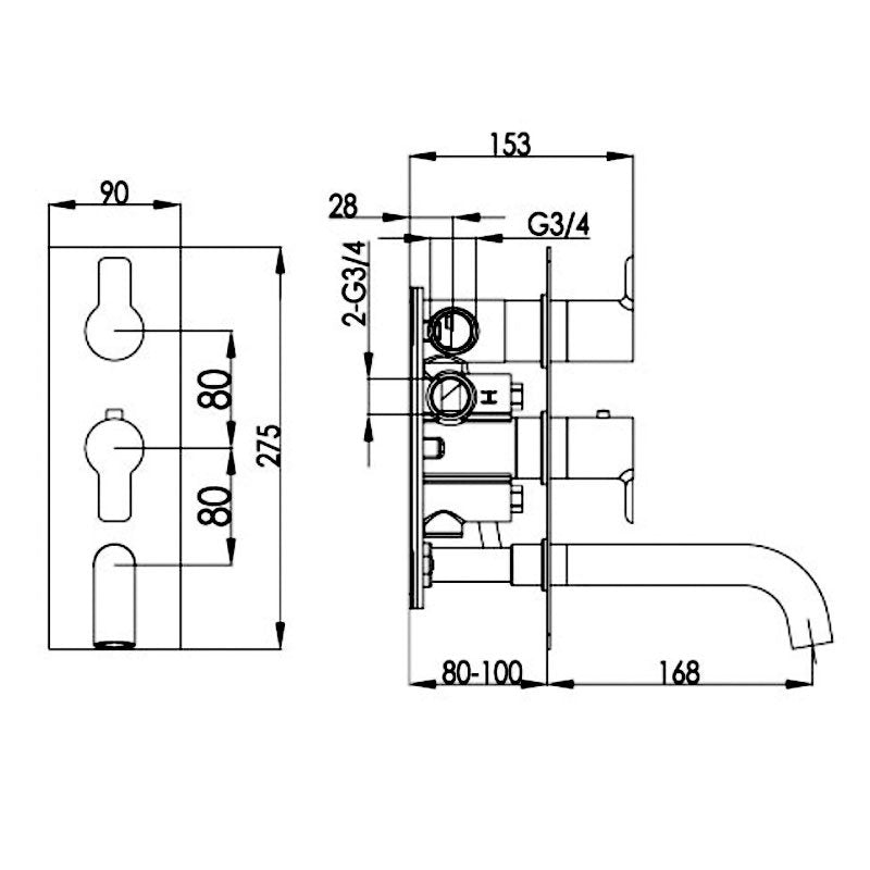 JTP Amore 2 Outlets Thermostatic Concealed Shower Valve with Attached Spout - Chrome