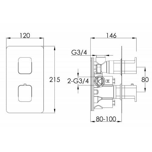 AXEL thermostatic concealed 1 outlet shower valve MP 0.5