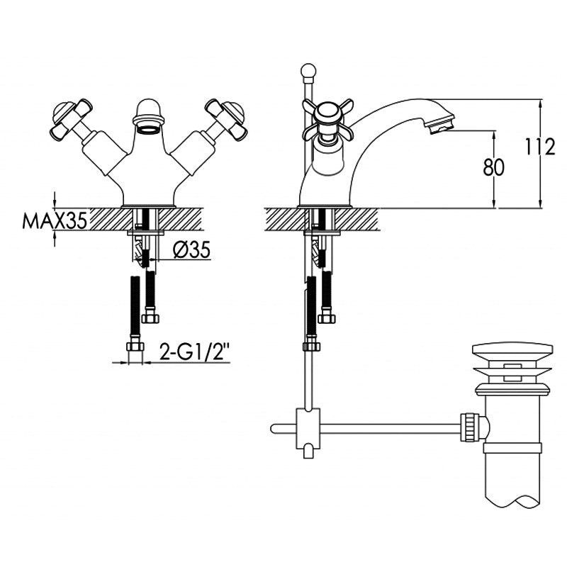 Grosvenor pinch basin mixer with pop up waste, LP 0.2