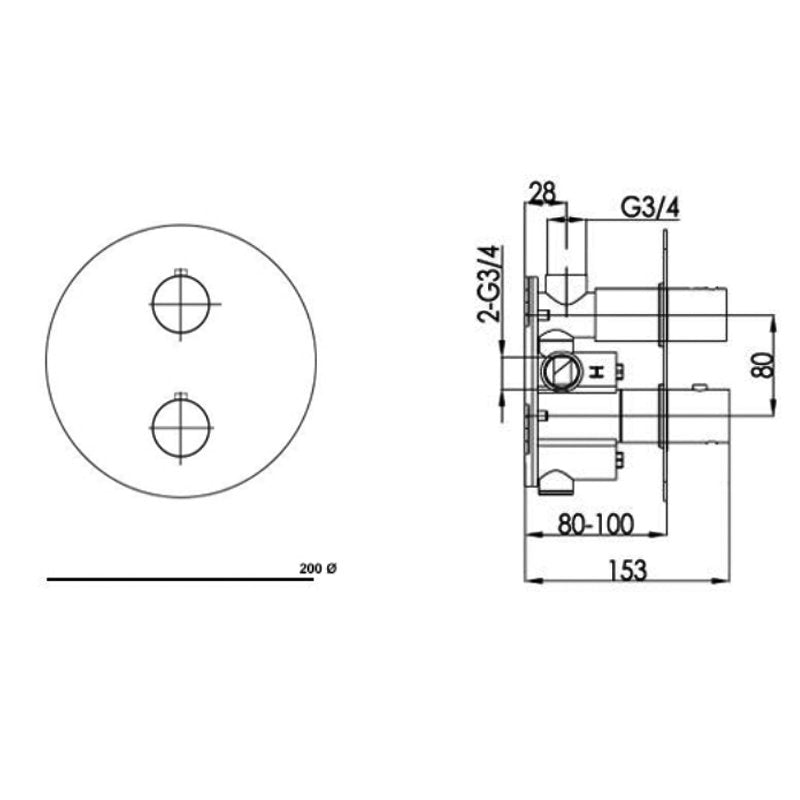 JTP Hugo 3 Outlet Thermostatic Concealed Shower Valve - Chrome