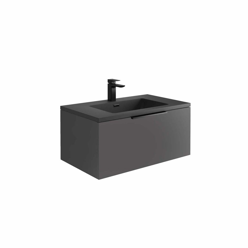 590x350x475mm Wall Mounted Vanity With Basin & Handle & Overflow - Matt Grey